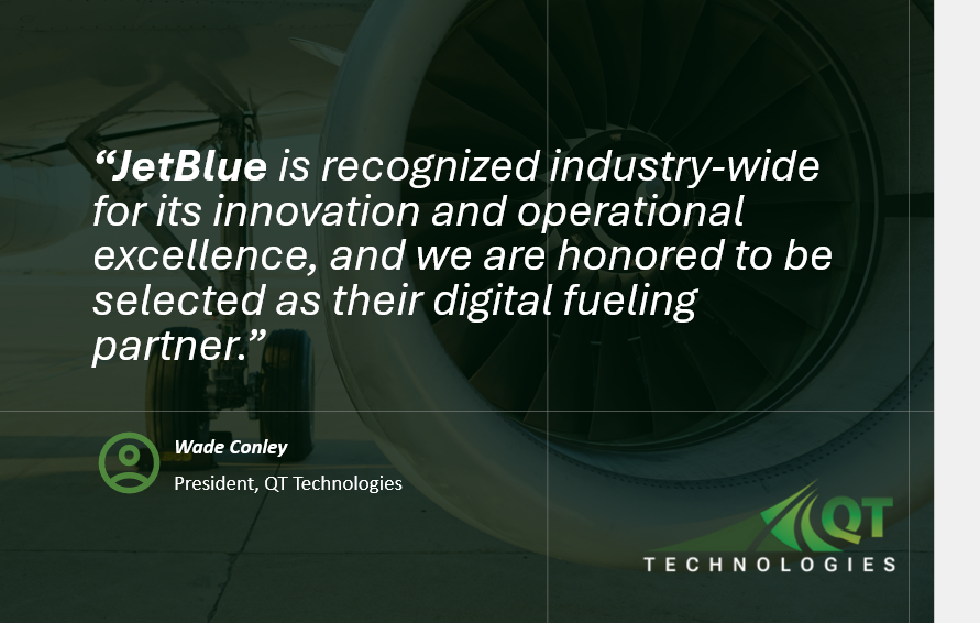 QT Technologies is the world’s largest provider of automated fueling solutions, enabling commercial airlines, cargo carriers, fuel suppliers, and into-plane service providers to achieve more efficient, safe, and profitable operations at scale. Headquartered in Dallas, Texas, QT Technologies is trusted by the largest entities in aviation and services more than 300 stations.